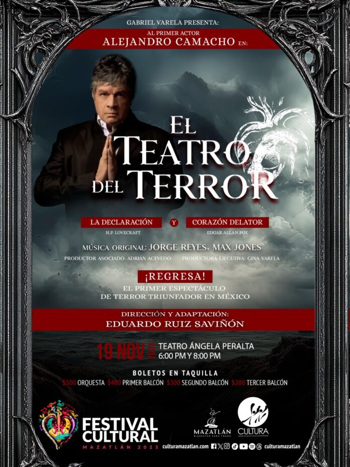 Con esta presentación, Mazatlán se suma a la gira nacional de un espectáculo que ha conquistado al público mexicano, donde la maestría de Alejandro Camacho promete una noche inolvidable de terror escénico, reflexión y arte.