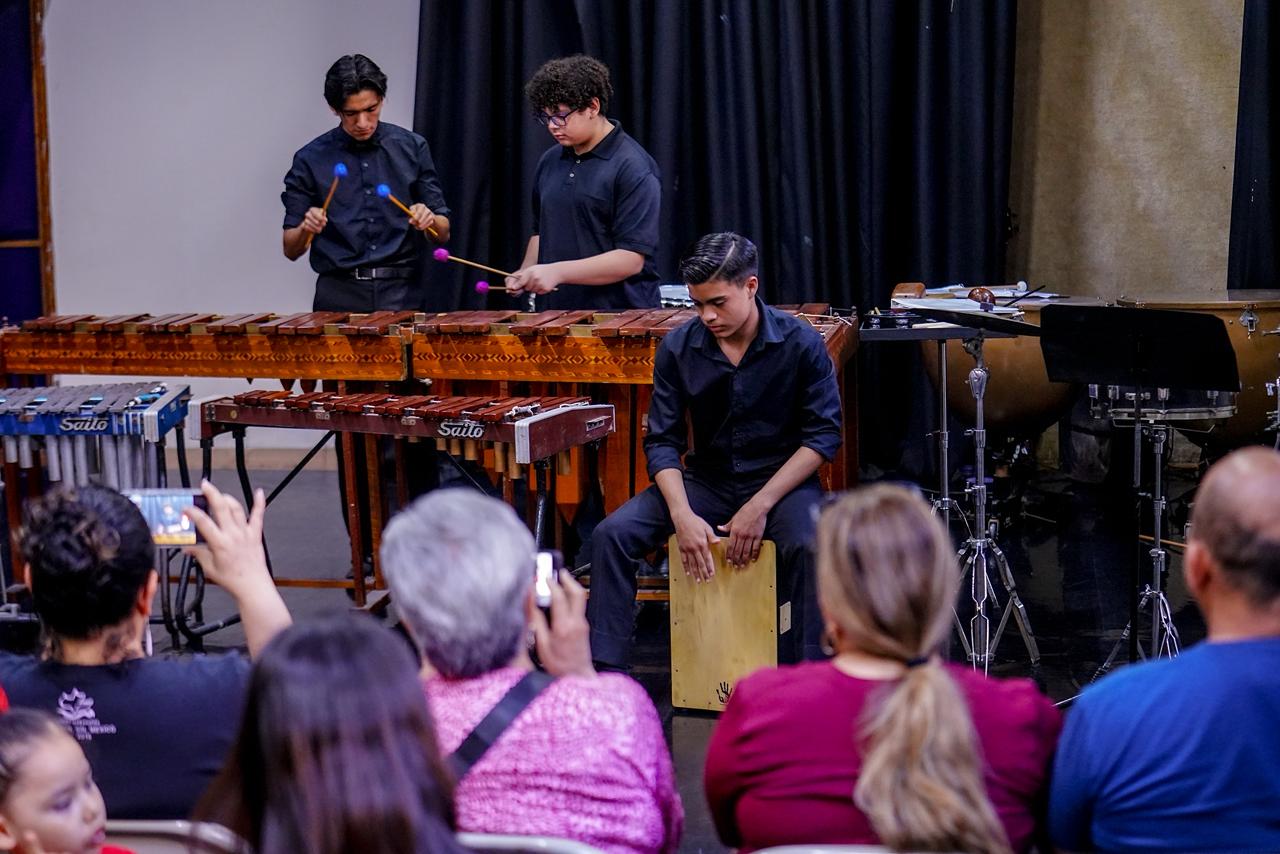 Alumnos de percusiones exponen su talento en clase abierta