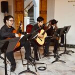 El emblemático Pórtico del Teatro Ángela Peralta se vistió de gala y ritmo para el cierre del ciclo semestral de los integrantes del Ensamble de Guitarras del Centro Municipal de las Artes (CMA).