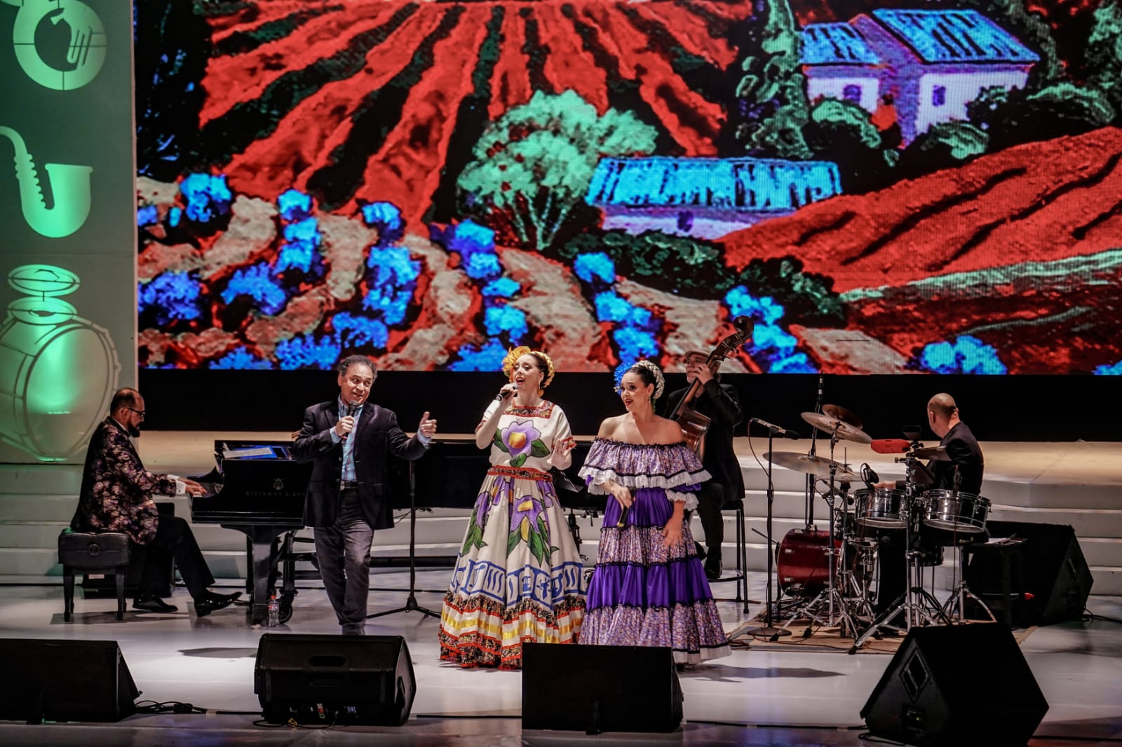 En momentos que emocionaron al público las voces de Adán Pérez, Rebeca de Rueda y Sarah Holcombe dieron vida a clásicos como Cucurrucucú, Échame a mí la culpa, Nana Pancha, Ley del Monte, Cien años, Noches de Mazatlán, El Pávido Návido, Las Isabeles, La India Bonita y Es demasiado tarde, entre otras.