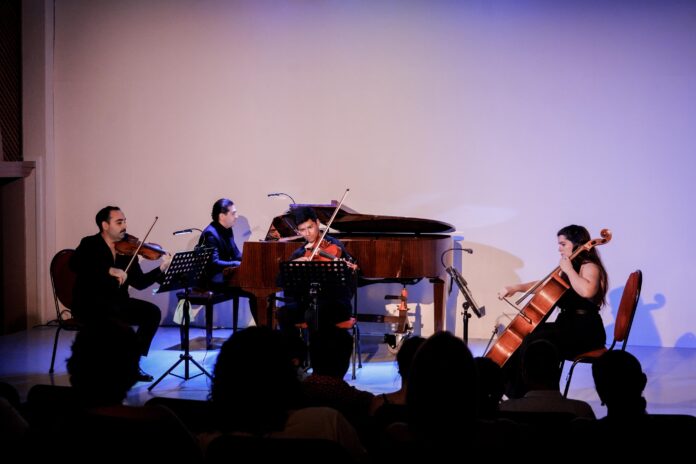 El ensamble, conformado por talentosos músicos locales y un invitado especial, cautivó al público con un repertorio de música de cámara de alto nivel. Dieron vida a «Antaño»: