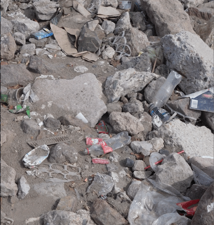 Incluso, se observaron dos botes de buen tamaño y hasta un baño público para el servicio de los visitantes a la escollera, pero aun así lo marranos no se nos quita y dejamos las botellas de vidrio de cerveza, los botes de agua o de refresco, las bolsas de papas y de plástico en donde, muy bien, podríamos recoger nuestra basura y con responsabilidad arrojarla en los botes y no a las piedras que luego se van a las aguas del mar y los peligros de la contaminación a la fauna marina.