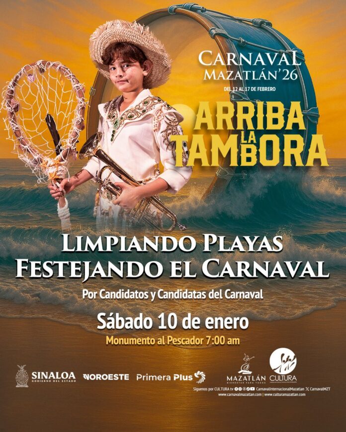 La limpieza de playas se realizará en coordinación con la Operadora y Administradora de Playas de Mazatlán, fortaleciendo el trabajo conjunto entre instituciones y la comunidad carnavalera para fomentar una cultura de conservación, responsabilidad ambiental y respeto por la naturaleza.