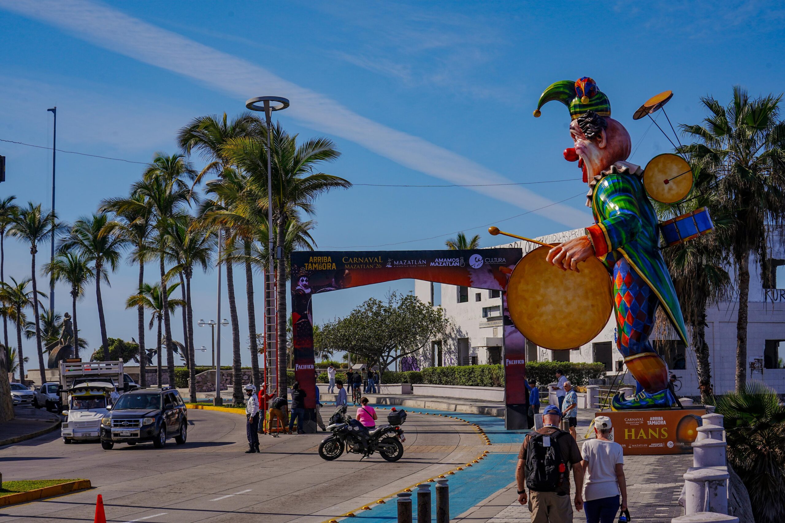 Como parte de los trabajos logísticos previos al Carnaval Internacional Mazatlán 2026 ¡Arriba la Tambora!, a tempranas horas de este día se llevó a cabo la colocación de arcos en accesos estratégicos de las zonas carnavaleras, acción fundamental para el ordenamiento y control de la movilidad durante las festividades.