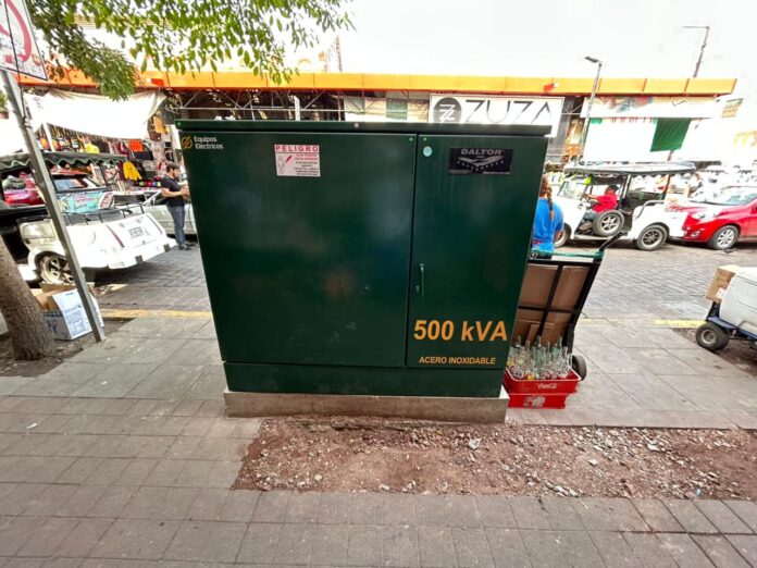 Los dos transformadores que ya ubicaron sobre la calle Leandro Valle tienen un tamaño mediano y se instaló sin problemas para el tránsito normal de los locales y los turistas. Sin duda es una gran diferencia comparadas con las “bardas” del absurdo que se instalaron, pero que fueron tiradas luego de las protestas y malestar de los comerciantes de los alrededores del mercado.