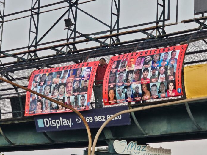 Integrantes del colectivo Buscadoras del Sur de Sinaloa A.C. iniciaron este domingo la colocación de 72 lonas con los rostros de sus familiares desaparecidos en distintos puntos del puerto, como parte de su labor permanente de búsqueda y visibilización.