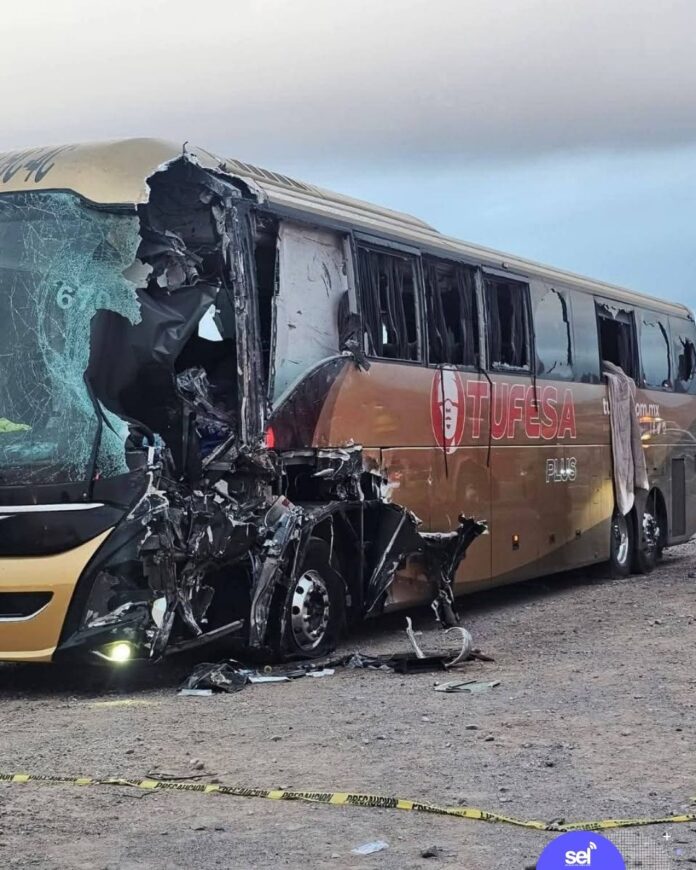 Un aparatoso accidente entre un autobús de pasajeros y un tractocamión se registró en el kilómetro 118 del tramo carretero Sonoyta–Caborca, en Sonora, lo que generó una intensa movilización de cuerpos de emergencia y corporaciones de seguridad, informó la Protección Civil Sonora.