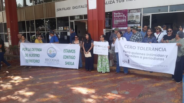 Colectivos de periodistas, ambientalistas y activistas sociales se sumaron esta mañana a la protesta pública en apoyo de la reportera Sheila Arias, quien ha sido agredida, amenazada e intimidada por un particular luego de ella publicará en su portal de noticias información de un proyecto que puede depredar áreas ecológicas en la zona de Playa Brujas, en Cerritos. Incluso también hay demanda penal de parte de Sheila, contra quien o quienes resulten responsables por el envío de correos electrónicos que agreden su trabajo de investigación sobre la ecología.