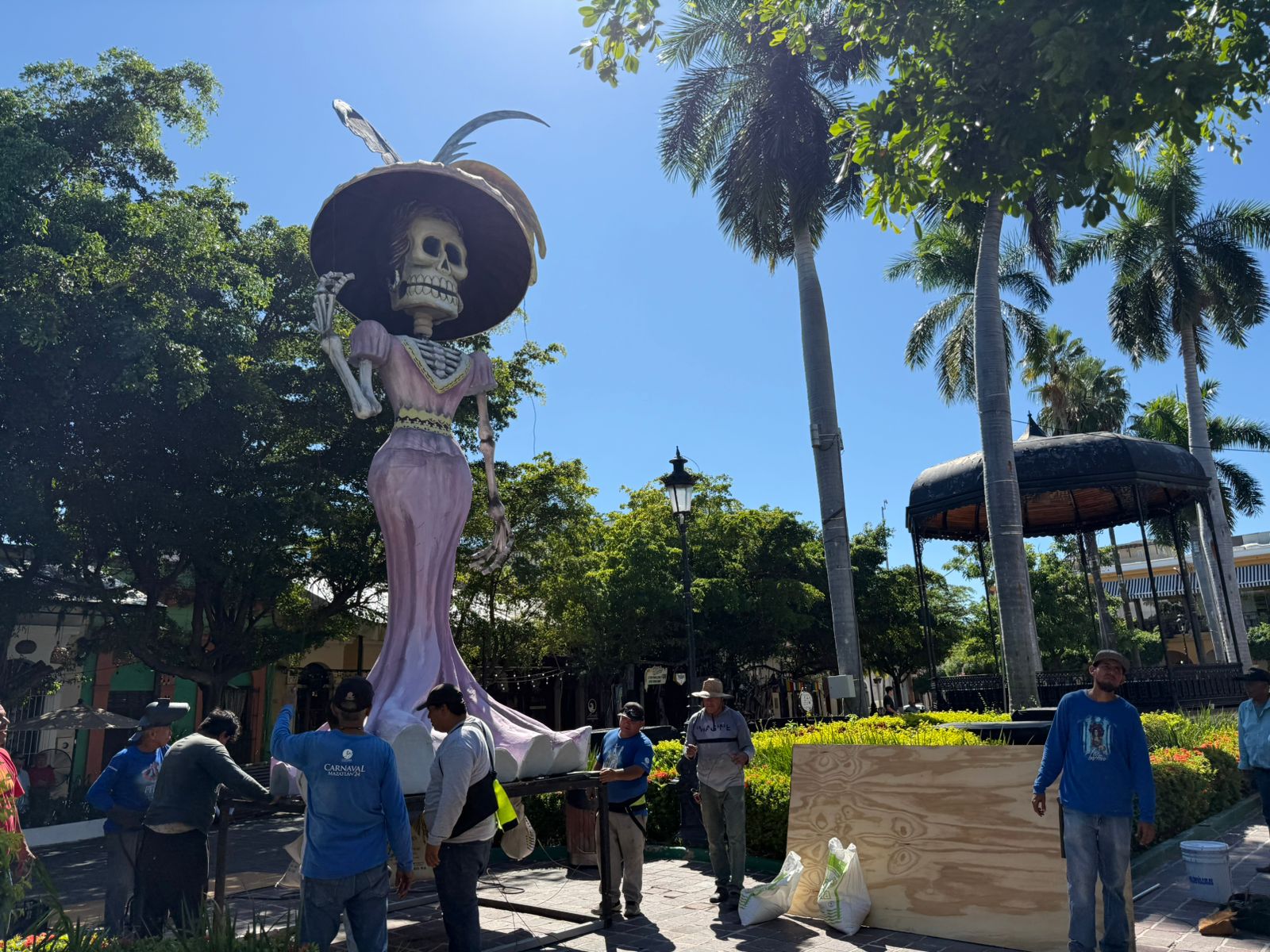 Comienza la transformación de la Plazuela Machado: el Instituto de Cultura viste de tradición el corazón de Mazatlán por el Día de Muertos.