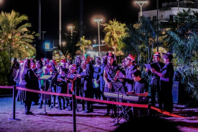 En medio de una colorida fiesta con pirotecnia, y con la sorprendente participación del Coro Infantil del Instituto de Cultura de Mazatlán, dirigido por la maestra Mariela Angulo, la Plaza Cabo Carena dio la bienvenida a la época navideña ante la presencia de cientos de personas que fueron testigos del encendido del pinito de navidad.