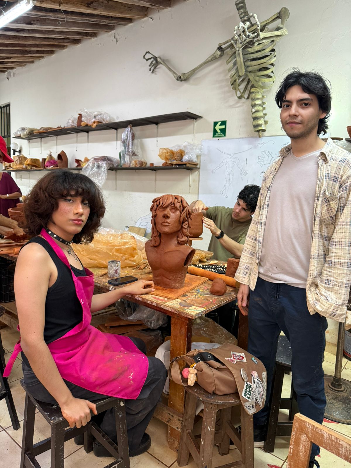 Este proceso técnico forma parte del aprendizaje cotidiano dentro del taller, donde cada alumno desarrolla proyectos personales. Durante una de las sesiones recientes, por ejemplo, un estudiante modelaba una escultura inspirada en un arcángel, trabajando primero el torso para después integrar las alas que completarán la pieza. En otra mesa, dos alumnos elaboraban una olla de cerámica, mientras que otra estudiante trabajaba dorsos en barro, explorando la anatomía humana a través del modelado.
