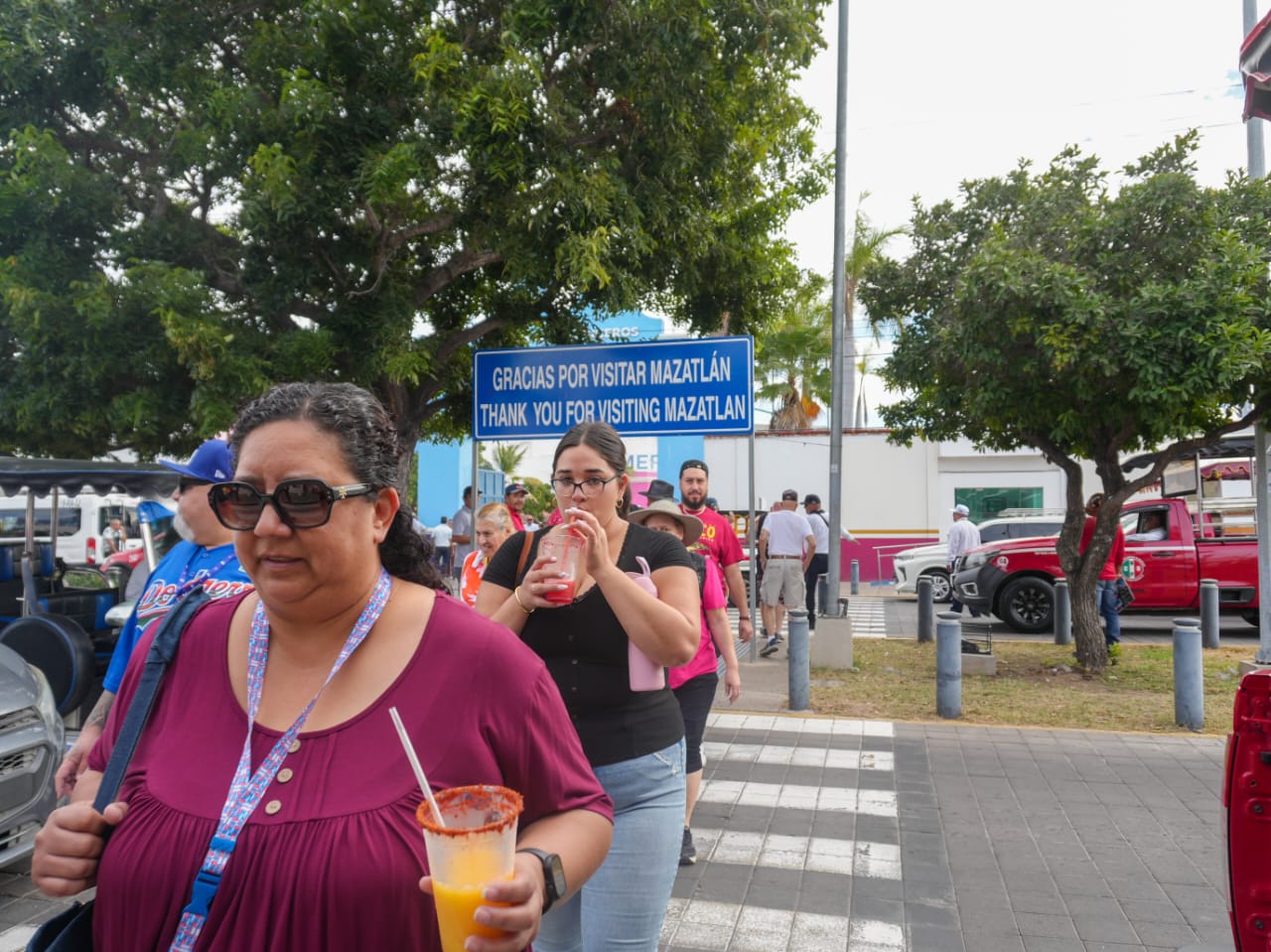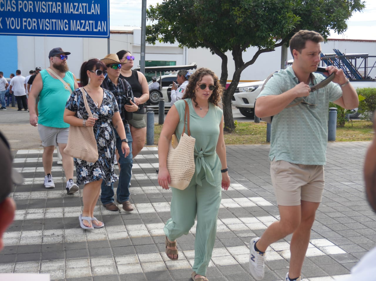 La secretaria de Turismo de Sinaloa, Mireya Sosa Osuna, realizó un recorrido por la terminal portuaria, donde platicó con transportistas y touroperadores y dio la bienvenida a los visitantes internacionales.