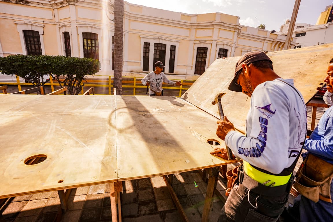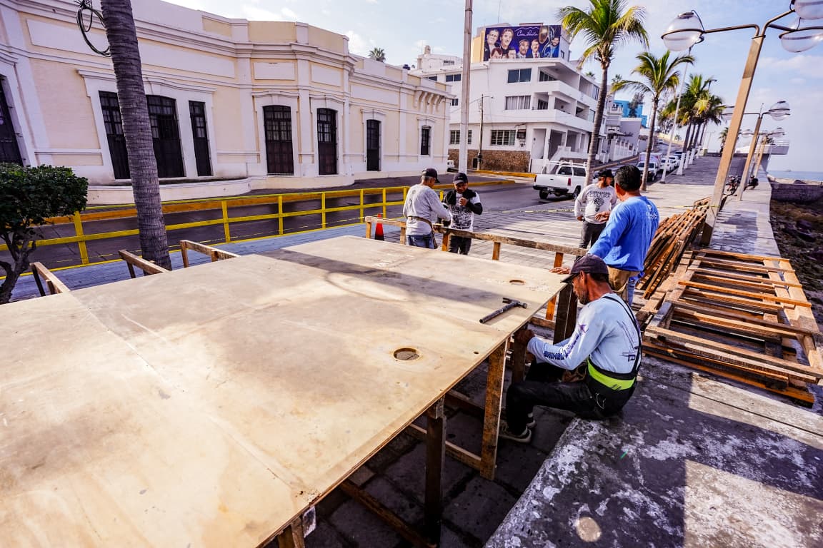 Durante las últimas semanas el Departamento de Operaciones ha realizado trabajos de mantenimiento a los arcos de entrada de olas altas, limpiando y desmontando piezas en carros alegóricos, e iniciarán en los próximos días la construcción de mamparas que se utilizarán en las diferentes coronaciones en el estadio Teodoro Mariscal.