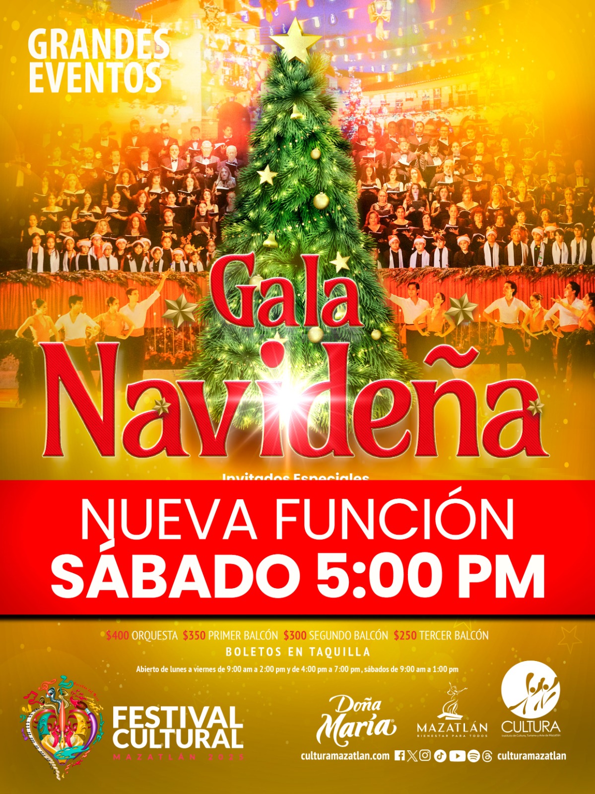 Ante la extraordinaria respuesta del público, el Instituto Municipal de Cultura, Turismo y Arte de Mazatlán confirma la apertura de una cuarta y última función de la esperada Gala Navideña con alrededor de 250 artistas en escena, para que ninguna familia se quede sin vivir esta experiencia que reúne el espíritu festivo del mundo.