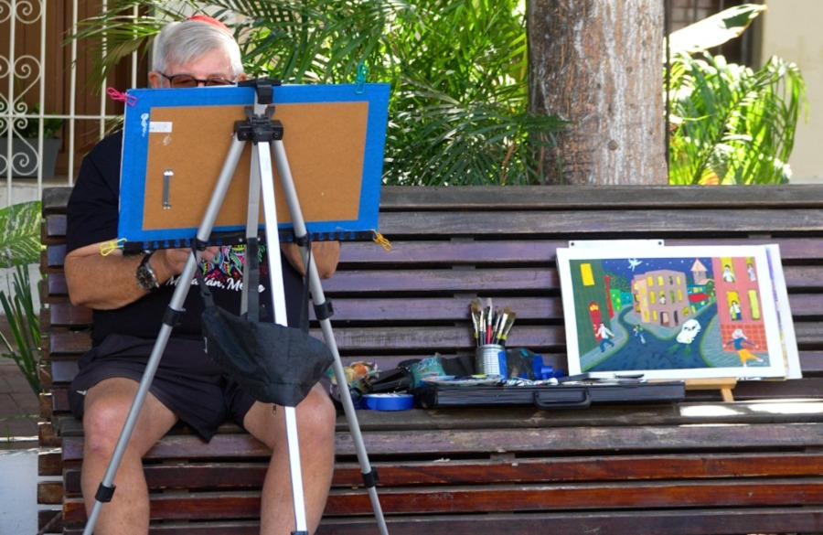 Daniel, de origen israelí-norteamericano vive en Oregón, es un extraordinario pintor en acuarela y sólo pinta, cuando está en Mazatlán, paisajes muy porteños y lo más interesante es que con la venta de sus trabajos ayuda y enseña a niños y adultos el arte de la pintura para que, eventualmente, se sostengan. Apoya, sobre todo a comerciantes ambulantes.