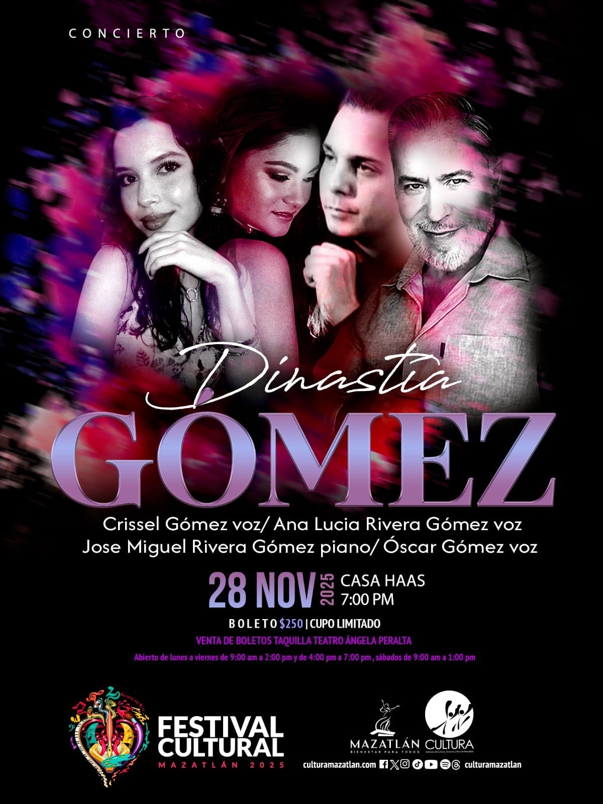 Casa Haas se prepara para recibir una velada musical de alto nivel con el concierto «Dinastía Gómez» este viernes 28 de noviembre a las 19:00 horas. El espectáculo promete conquistar al público al reunir el talento vocal e instrumental en un exquisito repertorio que transita entre piezas clásicas, ópera pop y el sentimiento de la música tradicional mexicana.