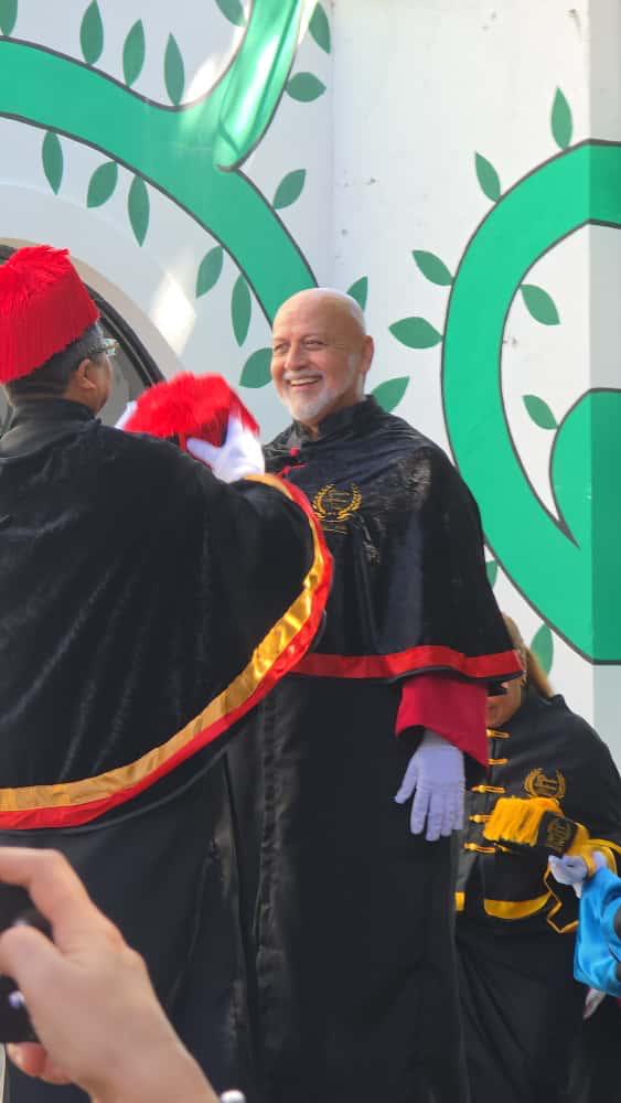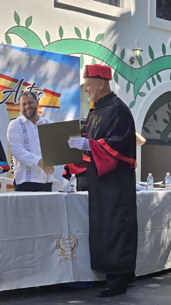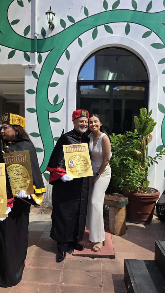 «La vida me ha brindado una oportunidad invaluable, y hoy he vivido un momento muy especial que atesoraré en mis recuerdos para siempre, al ser reconocido como Doctor Honoris Causa. Agradezco al Claustro Nobel de las Bellas Artes y a la Universidad de Artes y Oficios de México por esta distinción. A Dios, a mi familia y amigos por su amor y apoyo… mil gracias por todas sus palabras y cariño.»