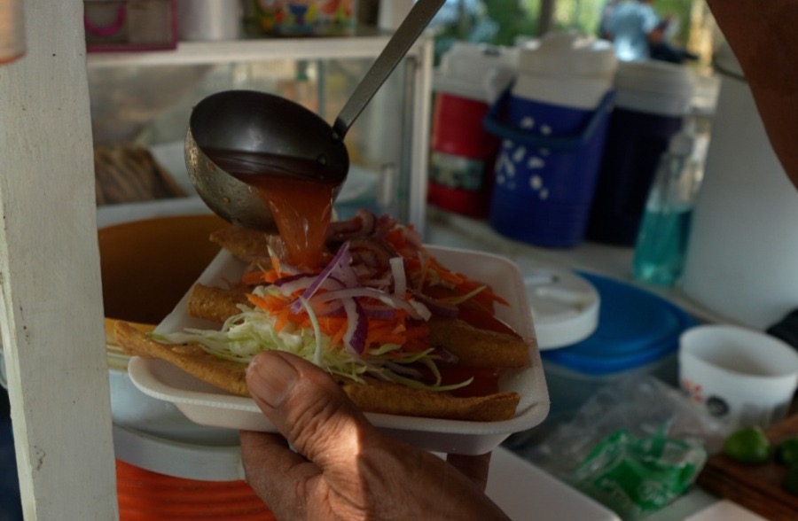 Los tacos dorados tienen un costo de 24 pesos cada uno o 50 pesos la orden de tres, mientras que los tacos suaves se venden a 25 pesos la pieza y tres por 55 pesos.