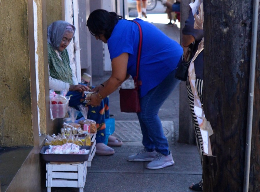 Afirma que llega hasta su “espacio de venta” en pulmonía, que el trabajador del volante le ayuda con sus cosas y los inspectores de Oficialía Mayor la respetan, no le cobran derecho de piso, por ser adulta mayor.