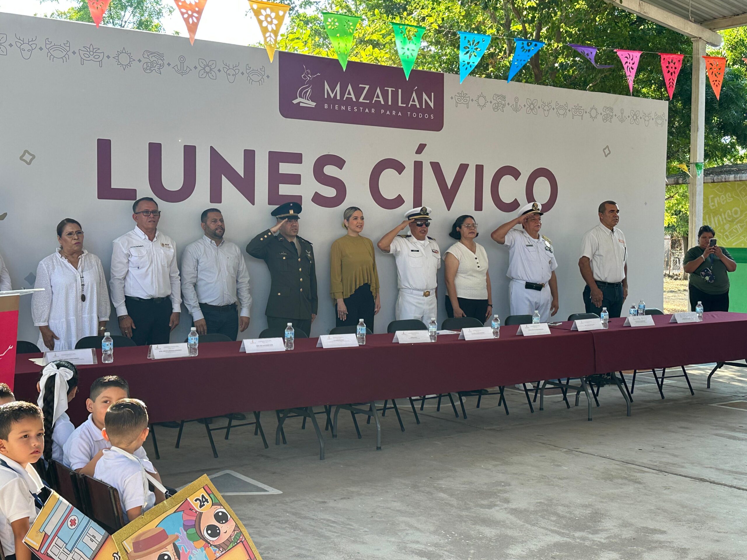 “Hoy es un día muy especial porque, además de rendir honores a nuestro lábaro patrio, iniciamos una obra que representa bienestar y seguridad para esta escuela, este gobierno está comprometido con la educación porque estamos convencidos de que educar es transformar, cada mejora en una escuela es una inversión en la felicidad y el bienestar de sus hijos”, expresó.