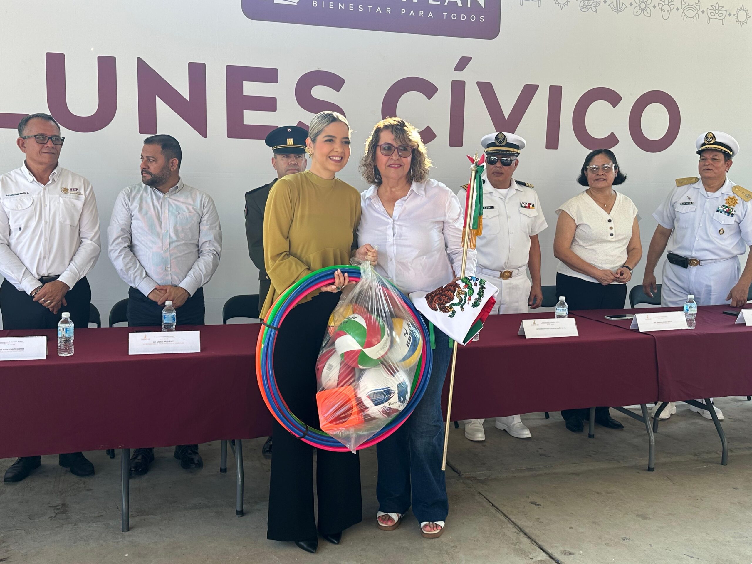 Durante el acto, la alcaldesa Estrella Palacios Domínguez anunció el arranque de la construcción de la barda perimetral de la escuela, una obra con una inversión de 2.3 millones de pesos, que busca brindar mayor seguridad y bienestar a las niñas y niños.