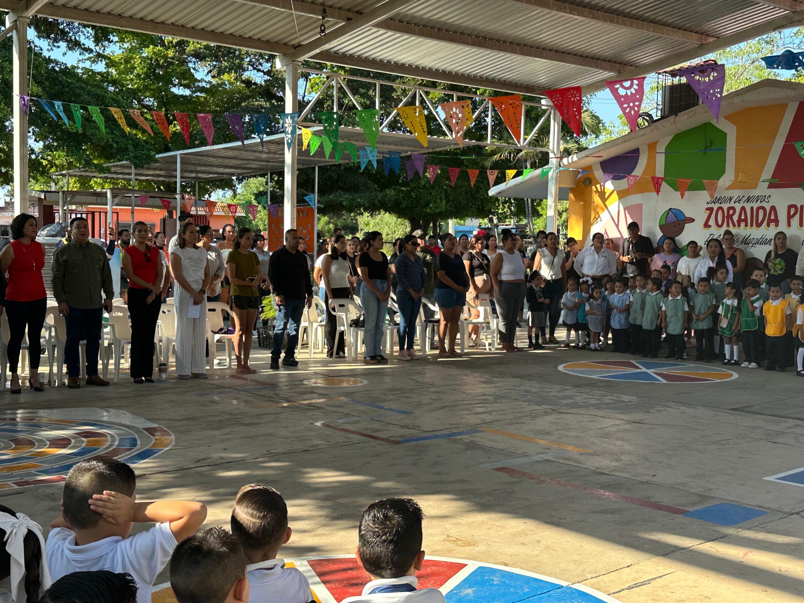 Está mañana, se llevó a cabo el programa Lunes Cívico en el Jardín de Niños “Zoraida Pineda”, donde además de rendir honores a la bandera, se dio inicio a una importante obra para el plantel.