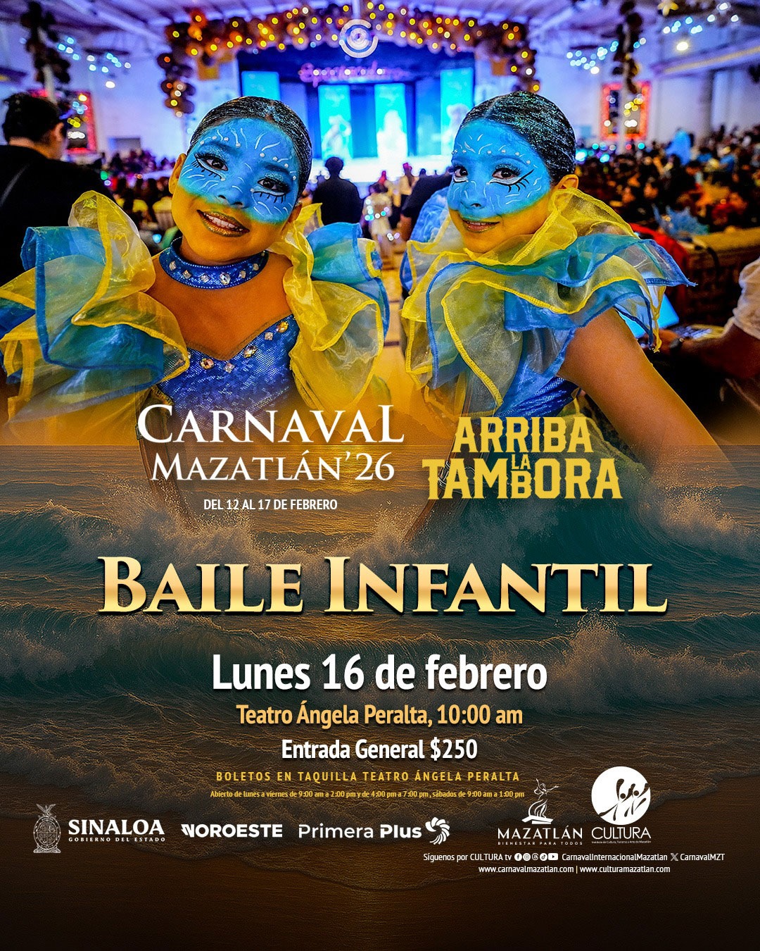 El próximo lunes 16 de febrero de 2026 en punto de las 10:00 horas, el Teatro Ángela Peralta abrirá sus puertas para recibir por primera vez toda la magia y el brillo del Gran Baile Infantil. Este evento, que forma parte de las festividades del Carnaval Internacional de Mazatlán, promete ser un espectáculo sin precedentes donde el talento de la niñez mazatleca será el protagonista en un escenario de clase mundial.