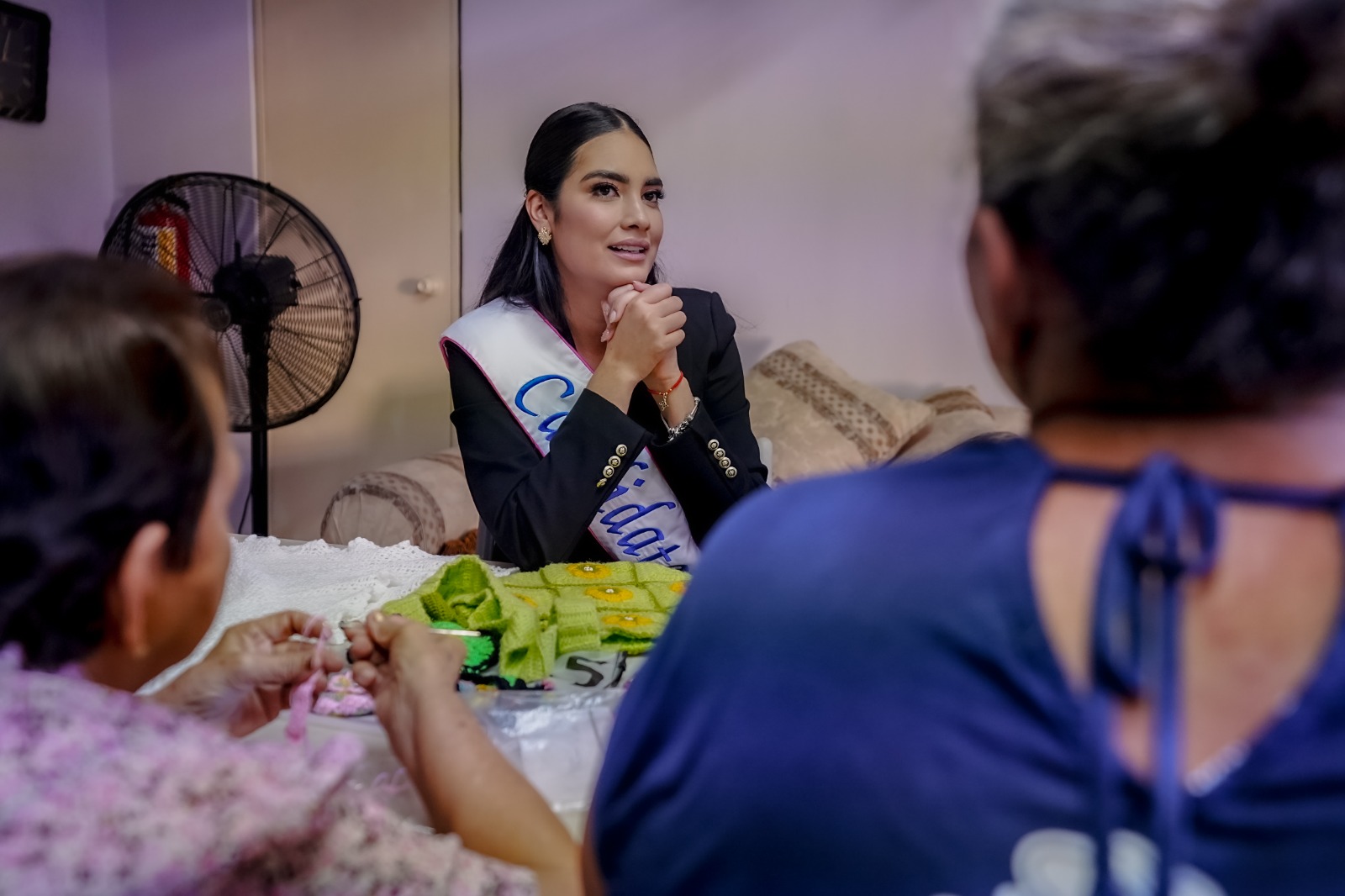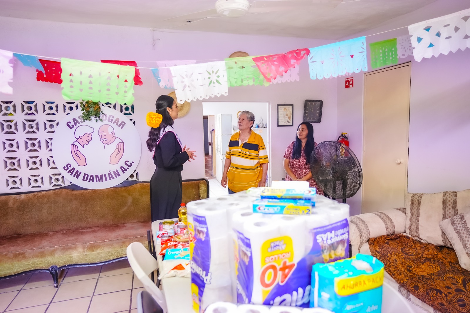 Gracias al apoyo de su equipo de trabajo, personas que la estiman y esfuerzo propio, durante los recorridos la candidata a Reina del Carnaval ha tenido la oportunidad de llevar alimentos no perecederos que son muy útiles para Casa Hogar San Damián A. C. espacio que atiende a personas de la tercera edad y les brinda protección, asistencia, alojamiento, y realiza actividades para mantener activos a quienes necesitan de estos cuidados.