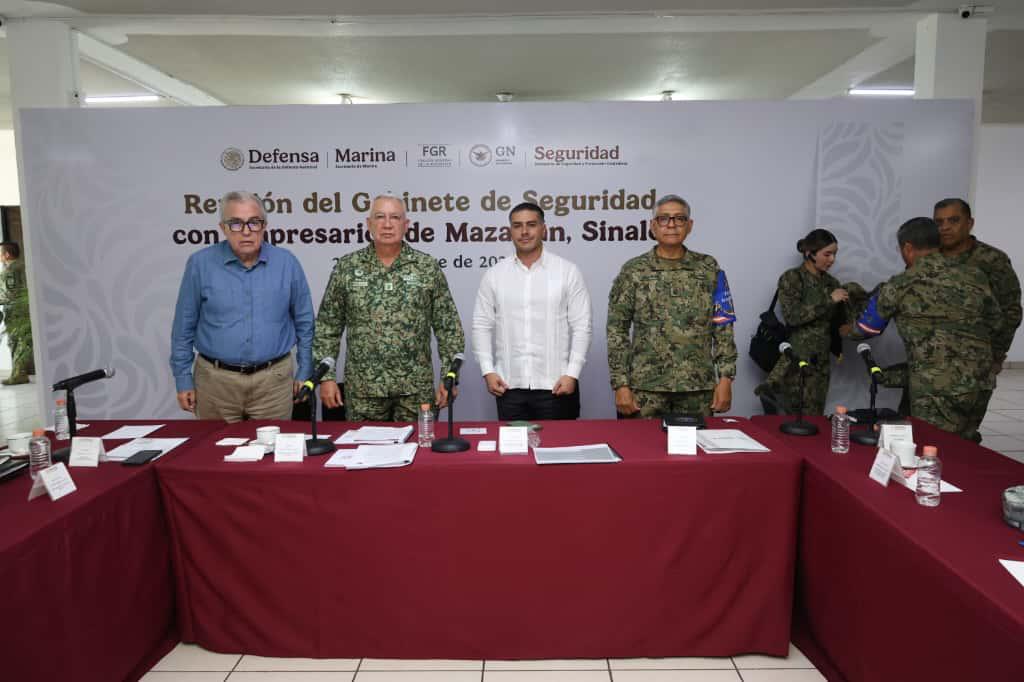 El encuentro y los acuerdos. A la reunión del gabinete de seguridad federal fueron invitados un grupo de empresarios de Mazatlán. Uno por uno fueron llegando por separado a las instalaciones militares de la tercera Región Militar. Previa identificación y revisar una lista, los invitados recibieron autorización de ingresar a lo que ayer parecía más que un cuartel, una fortaleza custodiada por numerosos militares, en tanto que en sus alrededores tendieron un cerco elementos de la Guardia Nacional, Policías federales, estatales y municipales. No había nada kilómetros a la redonda que los cuerpos de seguridad no estuvieran vigilantes.