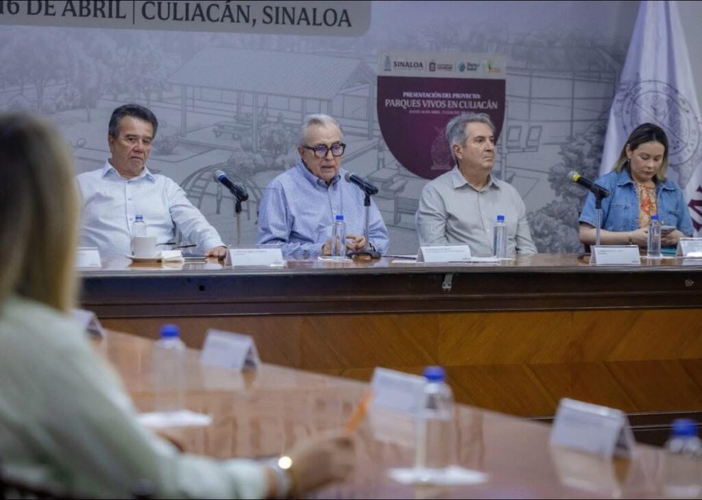 Suman esfuerzos a programa comunitario. En el Salón Gobernadores de Palacio de Gobierno en Culiacán se llevo a cabo un encuentro interesante al que acudieron los empresarios Jesús Vizcarra y Alberto Coppel. El programa “Parques vivos 4×1” tata el impulsar una estrategia que permita y promueva la participación ciudadana y la colaboración entre sociedad, iniciativa privada y gobierno encaminada a recuperar los espacios públicos. Las fundaciones que encabezan Vizcarra y Coppel junto al gobierno, aportarán cuatro pesos por cada peso que la comunidad se apueste a este interesante programa. El encuentro estuvo encabezado por el Gobernador Ruben Rocha Moya y presente el Alcalde de Culiacán Juan de Dios Gámez Mendivil.