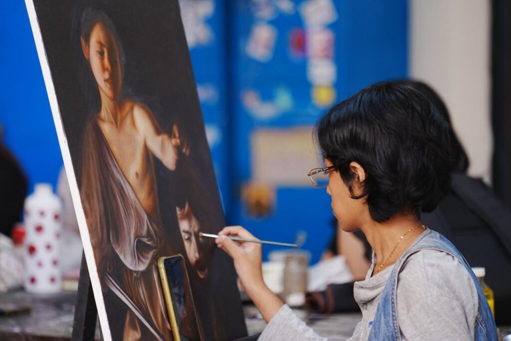El programa académico es integral. Incluye disciplinas como dibujo, pintura, escultura y grabado, además de historia del arte y otras herramientas que fortalecen la formación. Aquí, lo aprendido en una clase se conecta con otra, generando un proceso creativo continuo que se vive tanto dentro como fuera del aula.