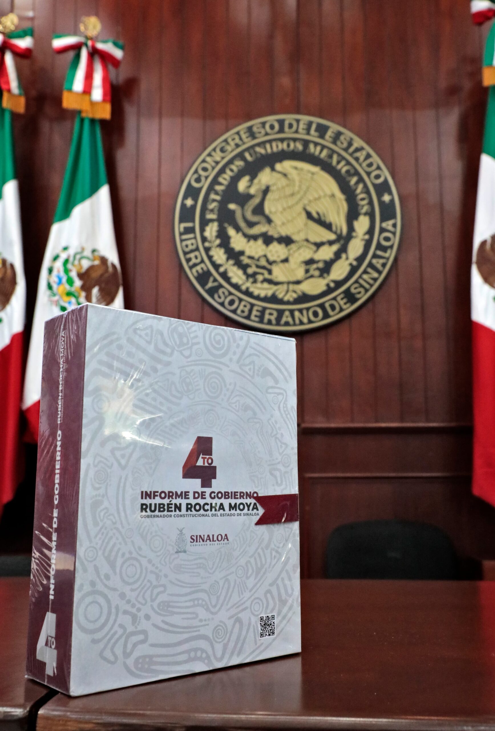 Cumpliendo con el artículo 40 de la Constitución Política del Estado de Sinaloa, la secretaria General de Gobierno, Yeraldine Bonilla Valverde, acudió al Congreso del Estado para entregar a los diputados de la LXV Legislatura el documento del Cuarto Informe del Gobernador Rubén Rocha Moya, en el que se destaca el humanismo transformador con el que ha trabajado por el desarrollo de Sinaloa y el bienestar de la población.