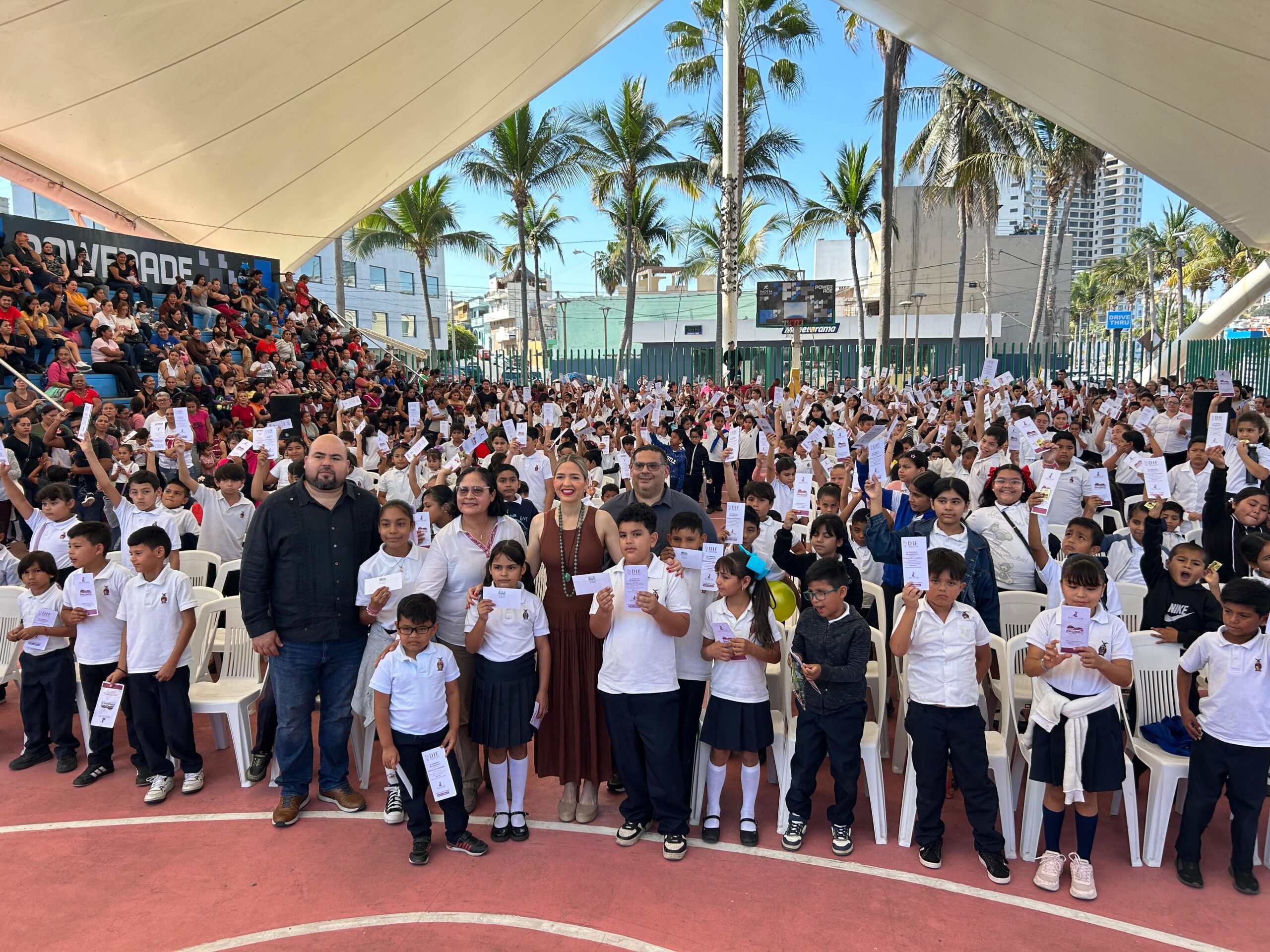 El evento se llevó a cabo en el parque Martiniano Carvajal, donde se entregaron 800 becas de 600 pesos, con una inversión de 2.4 millones de pesos, esto con el propósito de respaldar a las familias que más lo necesitan.
