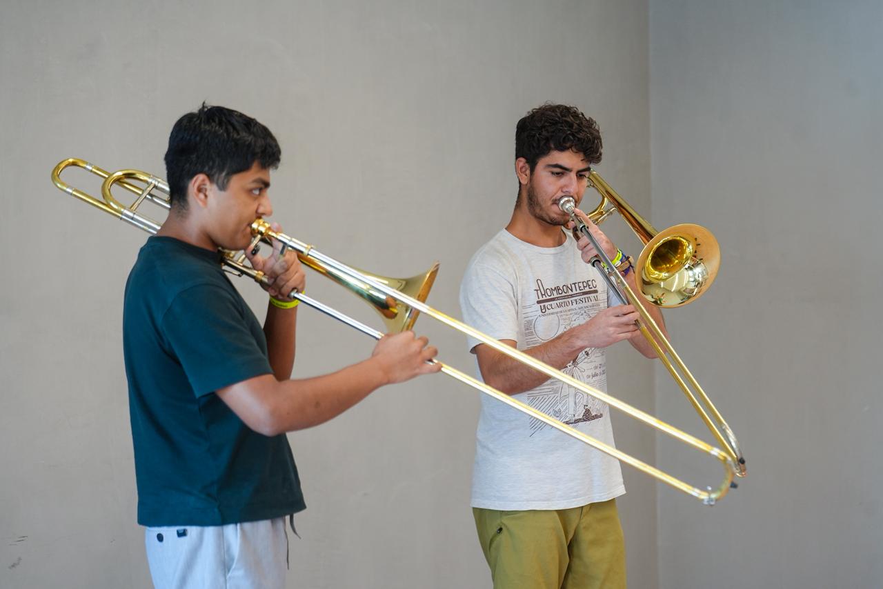Durante la sesión, Marlena mostró un enfoque sensible y dinámico para conectar con los jóvenes músicos mazatlecos, iniciando con ejercicios de respiración y calentamiento corporal que invitaron a los alumnos a liberar tensiones y preparar la mente para la interpretación. A lo largo del encuentro, fue adaptando el contenido según las inquietudes y nivel de los participantes, fomentando un ambiente participativo, de descubrimiento y diálogo artístico.