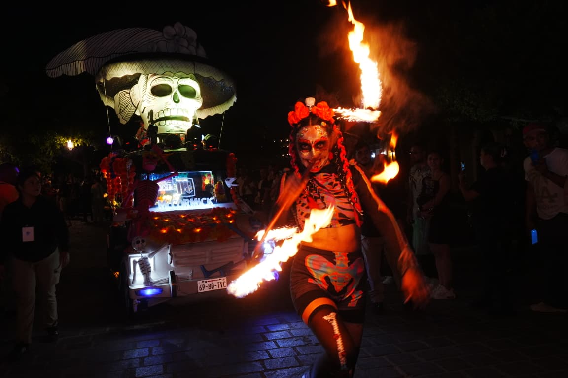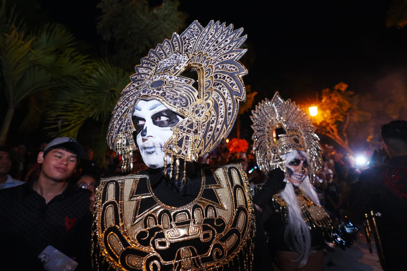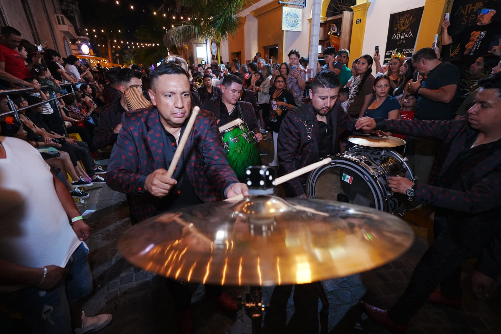 El contingente gozoso contó con alegres comparsas, espectáculos de lanzafuegos, música envolvente y los icónicos personajes de ultratumba, todos al ritmo de este género tradicional que simboliza la alegría de Sinaloa. La agrupación de Colegas Studio, de la Banda MS, fue digna exponente de esta música durante el recorrido.
