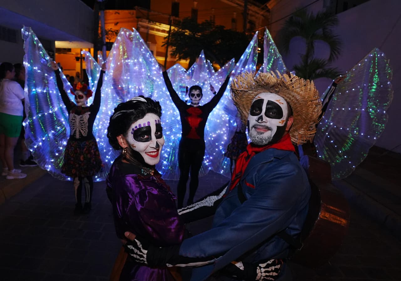 Rostros de alegría y suspiros acompañados por fuertes aplausos, recompensaron la entusiasta participación de un contingente de alrededor de 800 artistas que dieron vida a la tradicional Callejoneada de Día de Muertos. El evento, organizado por el Gobierno de Mazatlán a través del Instituto Municipal de Cultura, Turismo y Arte de Mazatlán que dirige Oscar García Osuna, se convirtió en una inolvidable » Noche de Esperanza» para miles de personas que atiborraron las calles del Centro Histórico.