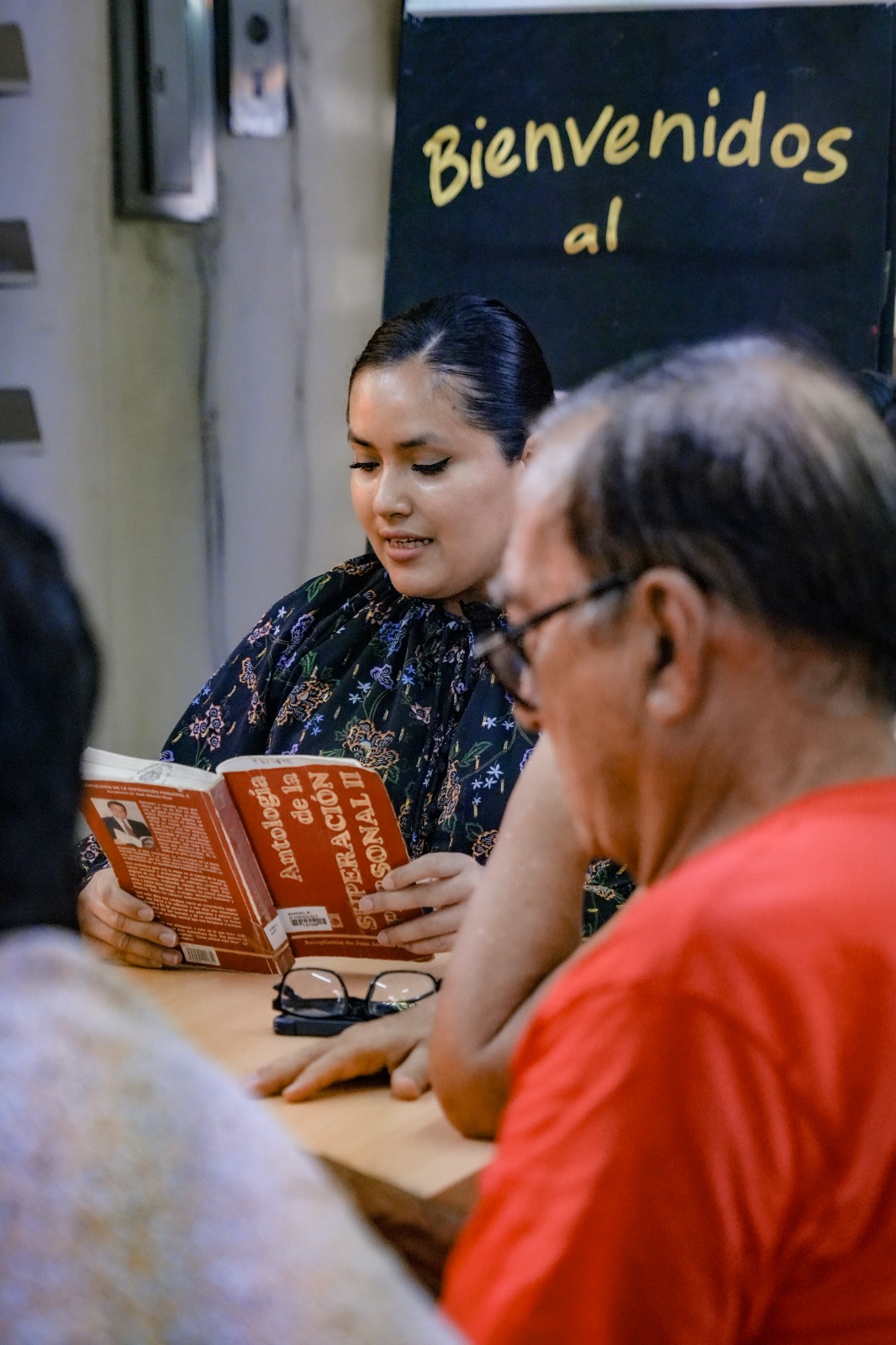 Se trata de un espacio diseñado para estimular la mente y los sentidos de los adultos mayores a través de la lectura (cuentos, poesía, poemas o datos informativos) y actividades lúdicas.