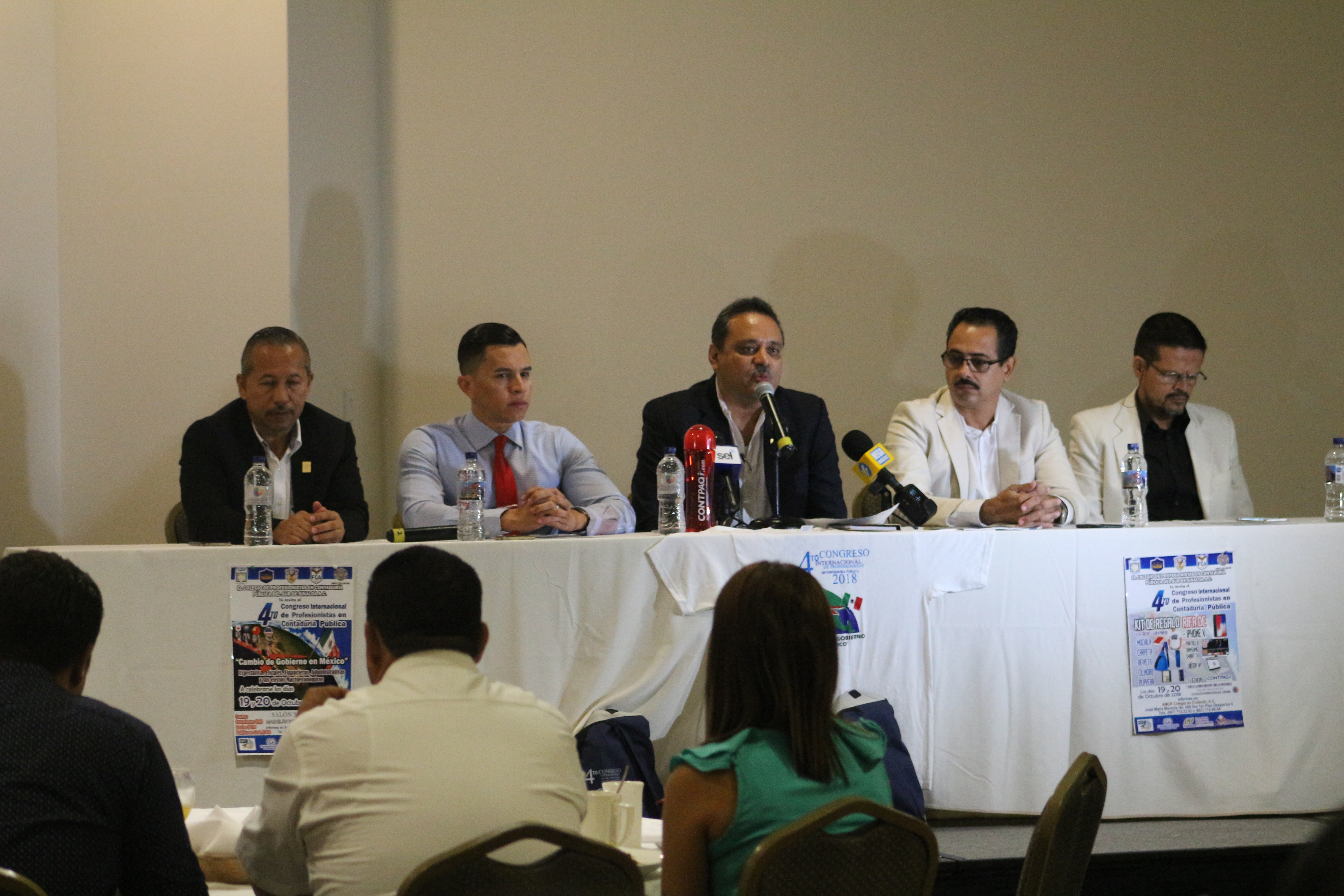 En la mesa de honor y en el marco de una invitación a los medios de prensa, estuvieron además de Osuna Acosta, el director de la Facultad de Ciencias de la UAS, Luis Cañedo Raygoza; el director del Centro de Estudios del Sur de Sinaloa, Andrés Contreras; el coordinador y subcoordinador del IV Congreso Internacional de Profesionistas en Contaduría Pública, Juan Enrique Espinosa y Arturo Martínez Parra, respectivamente, quienes anunciaron precisamente la realización de este evento de talla nacional e internacional.