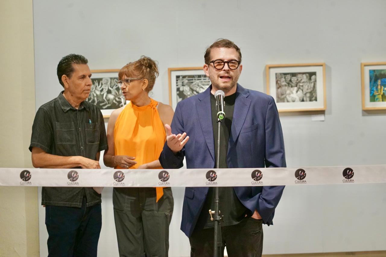 “Muy buenas tardes, muchas gracias maestros por estar aquí. Estamos muy contentos de tener de manera consecutiva una exposición colectiva; nuestra exposición anterior fue la del colectivo de mujeres, y ahora tenemos una exposición colectiva de artistas sinaloenses que sin duda nos muestran la proyección artística que tiene Sinaloa. Muchas gracias por compartir su trabajo, por compartir esta exposición que seguramente todos los mazatlecos van a disfrutar desde el día de hoy y hasta el 28 de noviembre, muchas gracias por acompañarnos.”