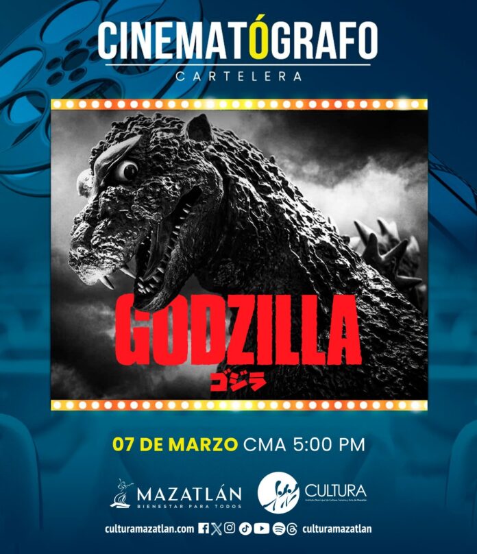 Un clásico de ciencia ficción de todos los tiempos, “Godzilla” (1954), dirigida por Ishiro Honda, llega este sábado 7 de marzo a las 5:00 p.m. al Cinematógrafo “Marco Lugo” del Centro Municipal de las Artes, una obra fundacional del cine fantástico y una de las películas más influyentes del siglo XX.