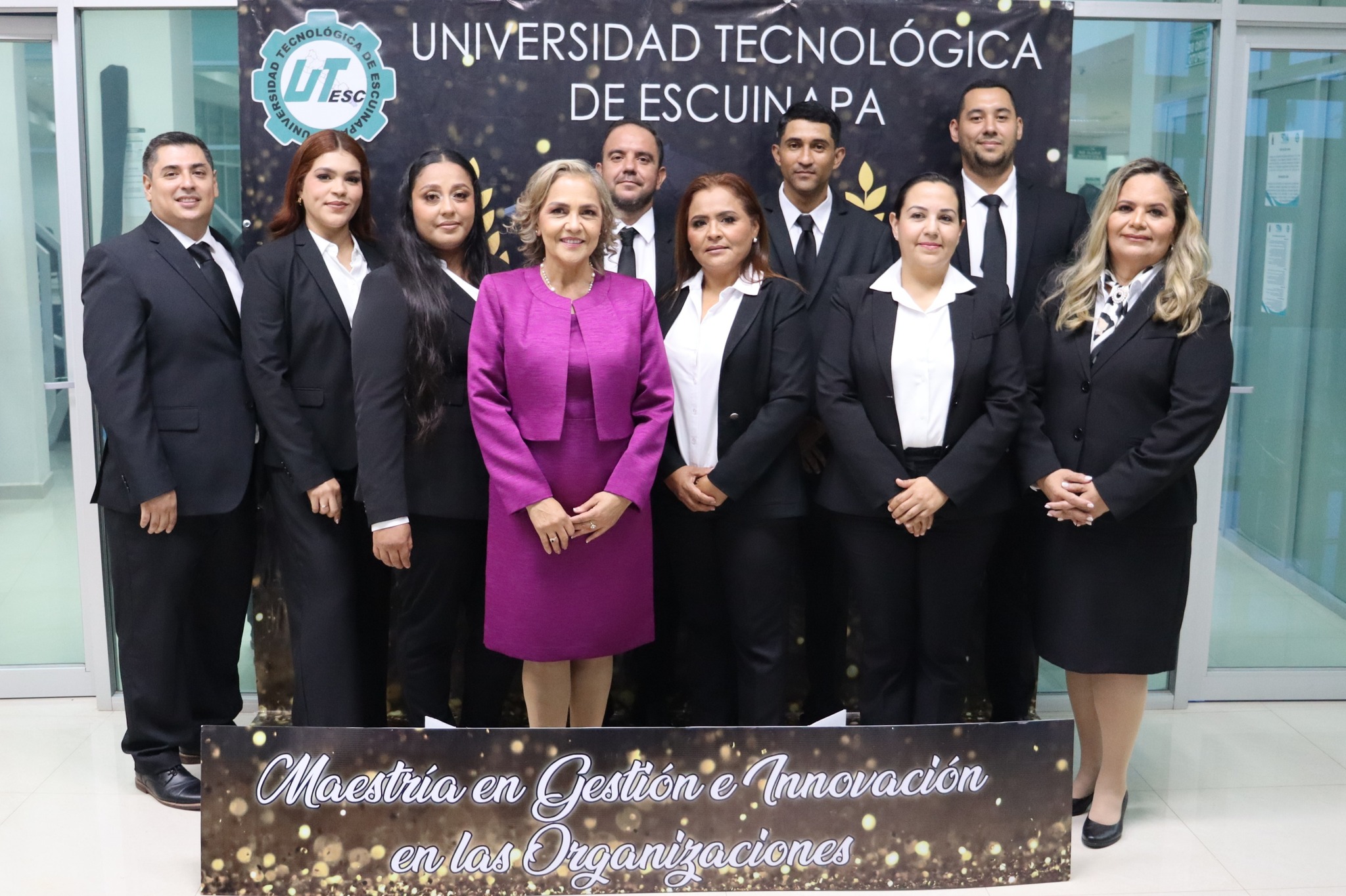 La generación 2024 – 2025 está integrada por nueve personas, quienes, entre diciembre de 2025 y enero de 2026 llevaron a cabo una exitosa defensa de tesis, a quienes en esta ocasión, el rector felicitó expresando la satisfacción de consolidar el posgrado en la Universidad Tecnológica de Escuinapa. La madrina designada por las y los egresados fue la Dra. Marcela Rebeca Contreras Loera.
