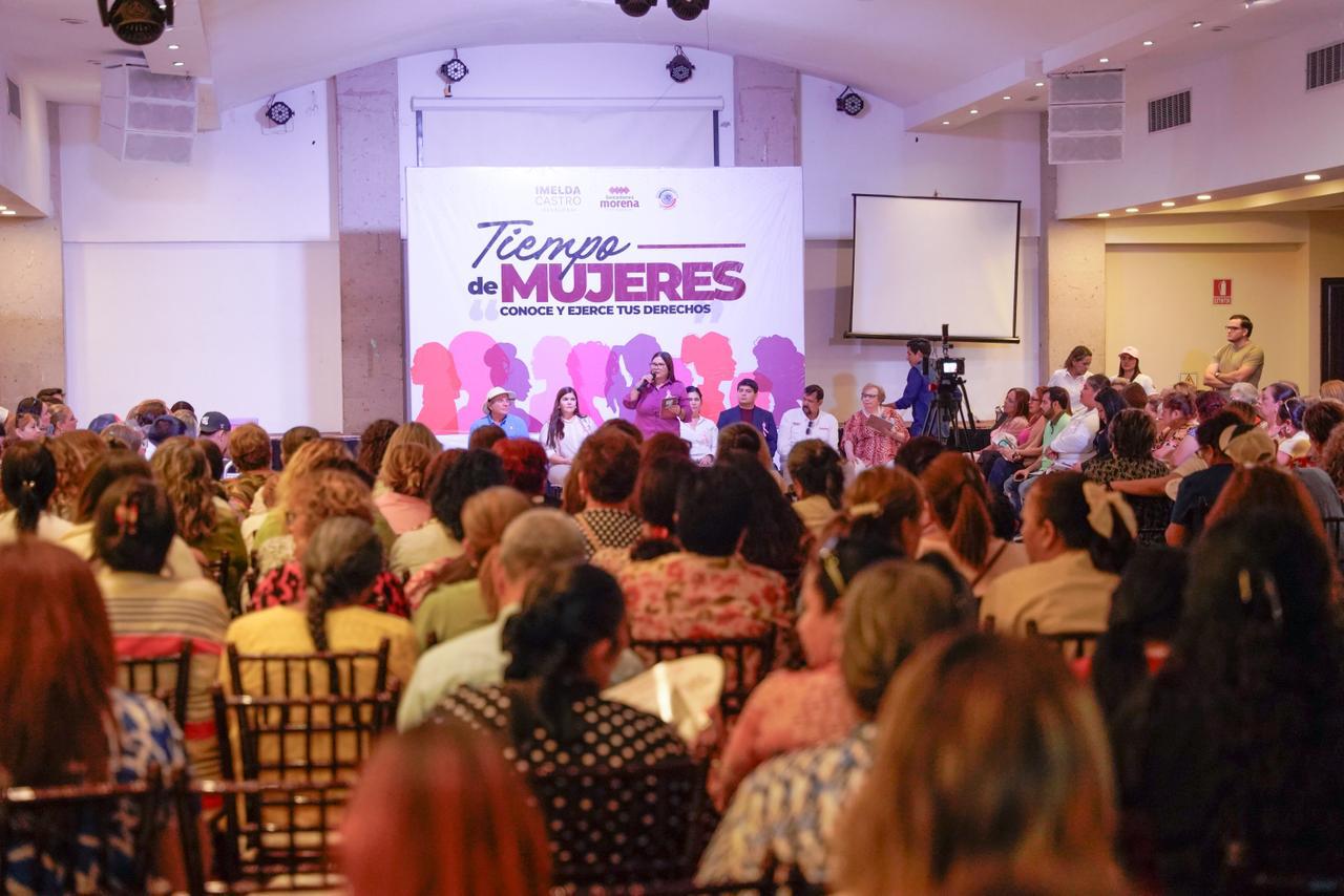 LOS MOCHIS.-En gira realizada este sábado por el norte del estado, donde reunió a más de 1200 mujeres, la senadora de la república, Imelda Castro Castro, encabezó la entrega de la Cartilla de Derechos de las Mujeres en los municipios de Guasave y Ahome, donde reiteró que “hoy efectivamente es tiempo de las mujeres y no solo del pueblo”, haciendo referencia al liderazgo de la presidenta Claudia Sheinbaum Pardo.