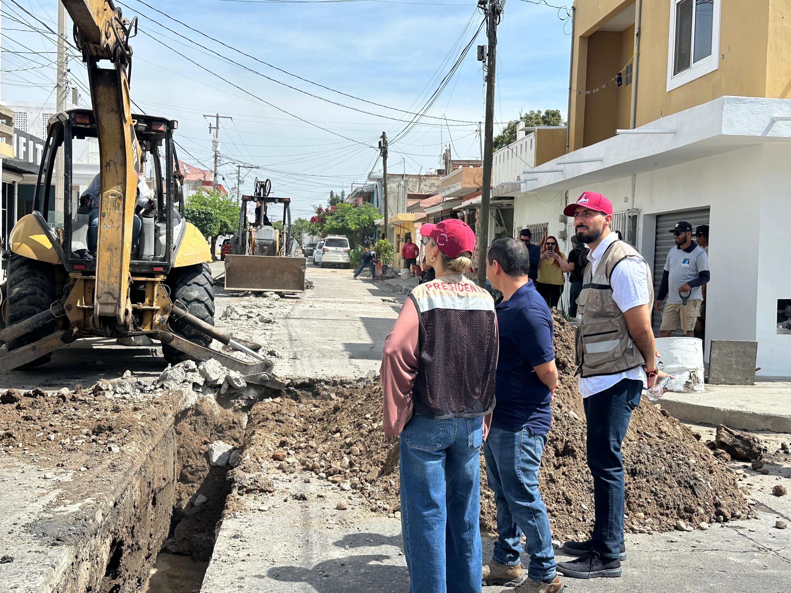 Durante un recorrido de supervisión, la alcaldesa Estrella Palacios informó que los trabajos contemplan la rehabilitación de 100 metros de drenaje, la realización de 20 nuevas conexiones y la reparación de un socavón ubicado al final de la calle.