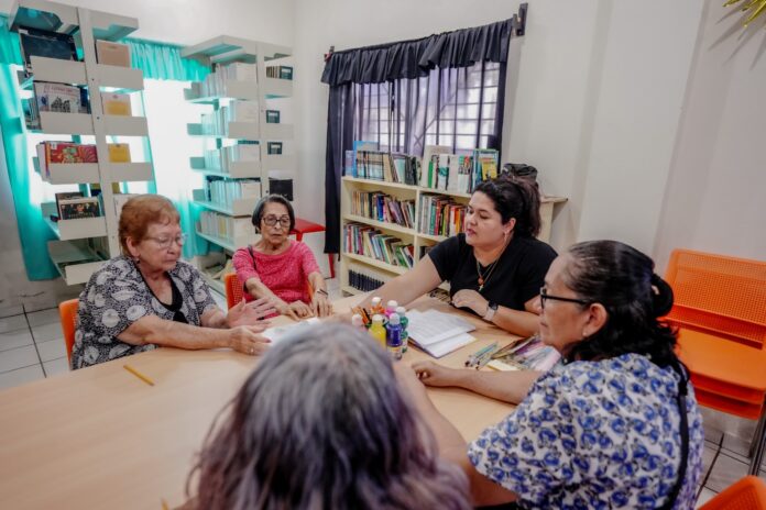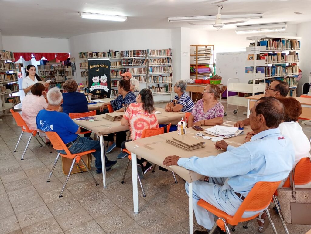La palabra de las bibliotecarias Karime Aglaed Tiznado y María Medina se escucharon en la popular biblioteca de los Leones para realizar “El Martes del Abuelo”, donde leyeron obras de los libros “Lenguas indígenas de México” por Arqueología Mexicana; del “Diccionario de la Lengua Náhuatl o Mexicana”; de Josefina Oliva de Coll, y “Las viejas Calles de Mazatlán” por Oses Cole, finalizaron haciendo figuras marinas como manualidad.
