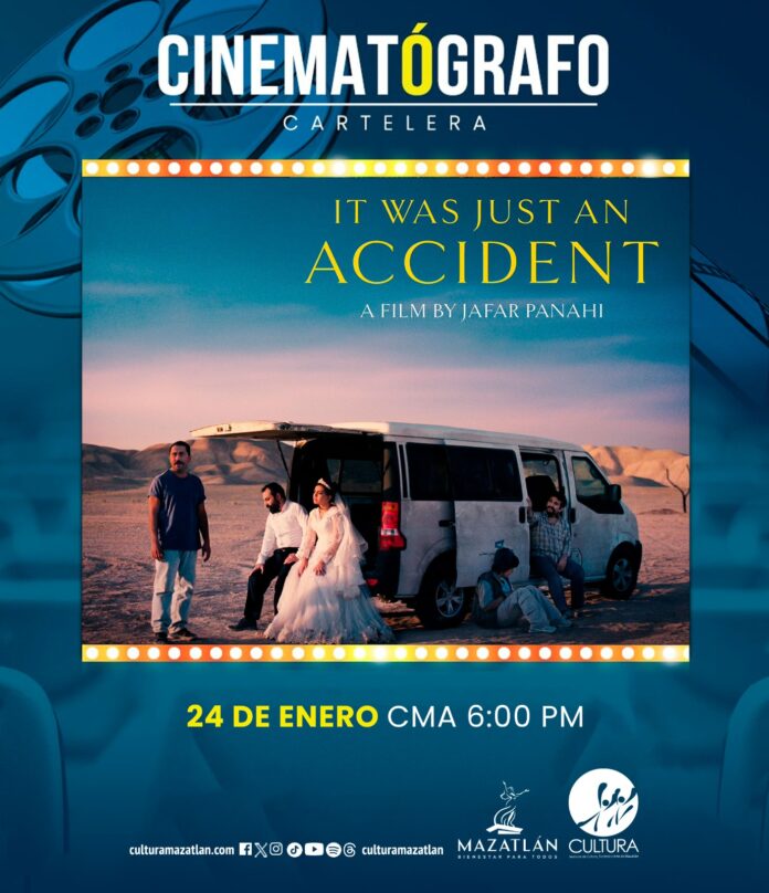 Nominada este 2026 al Oscar en la categoría Mejor Película Extranjera y galardonada con la Palma de Oro de Cannes en 2025, este sábado 24 de enero a las 18:00 horas en el Cinematógrafo “Marco Lugo” del CMA se proyectará “It Was Just an Accident” (2025) del director Jafar Panahi, un thriller político que no te puedes perder.