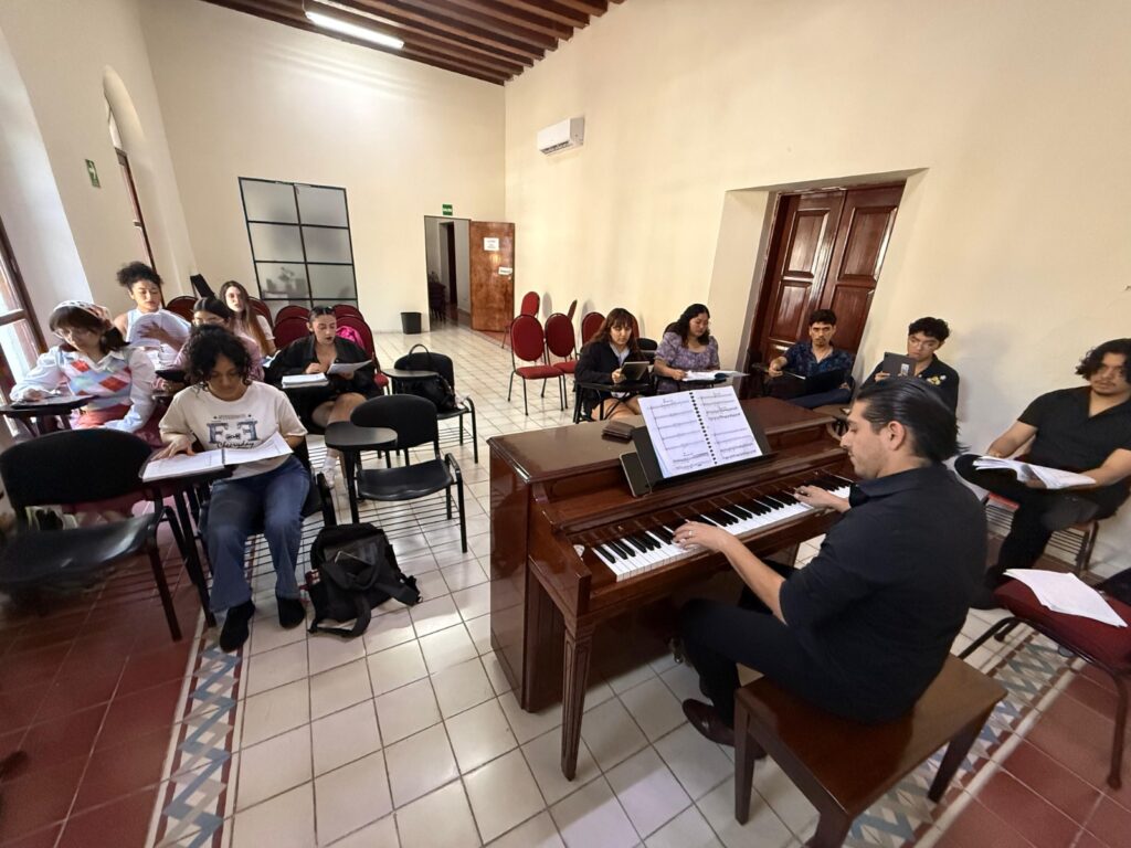 “Doy clases en la licenciatura de conjuntos corales, dirección musical y práctica de repertorio, además de participar en la materia clínica de ópera”, explica. Este espacio integra técnica vocal, interpretación y escena, y permite que el alumno entienda la música más allá de la partitura.