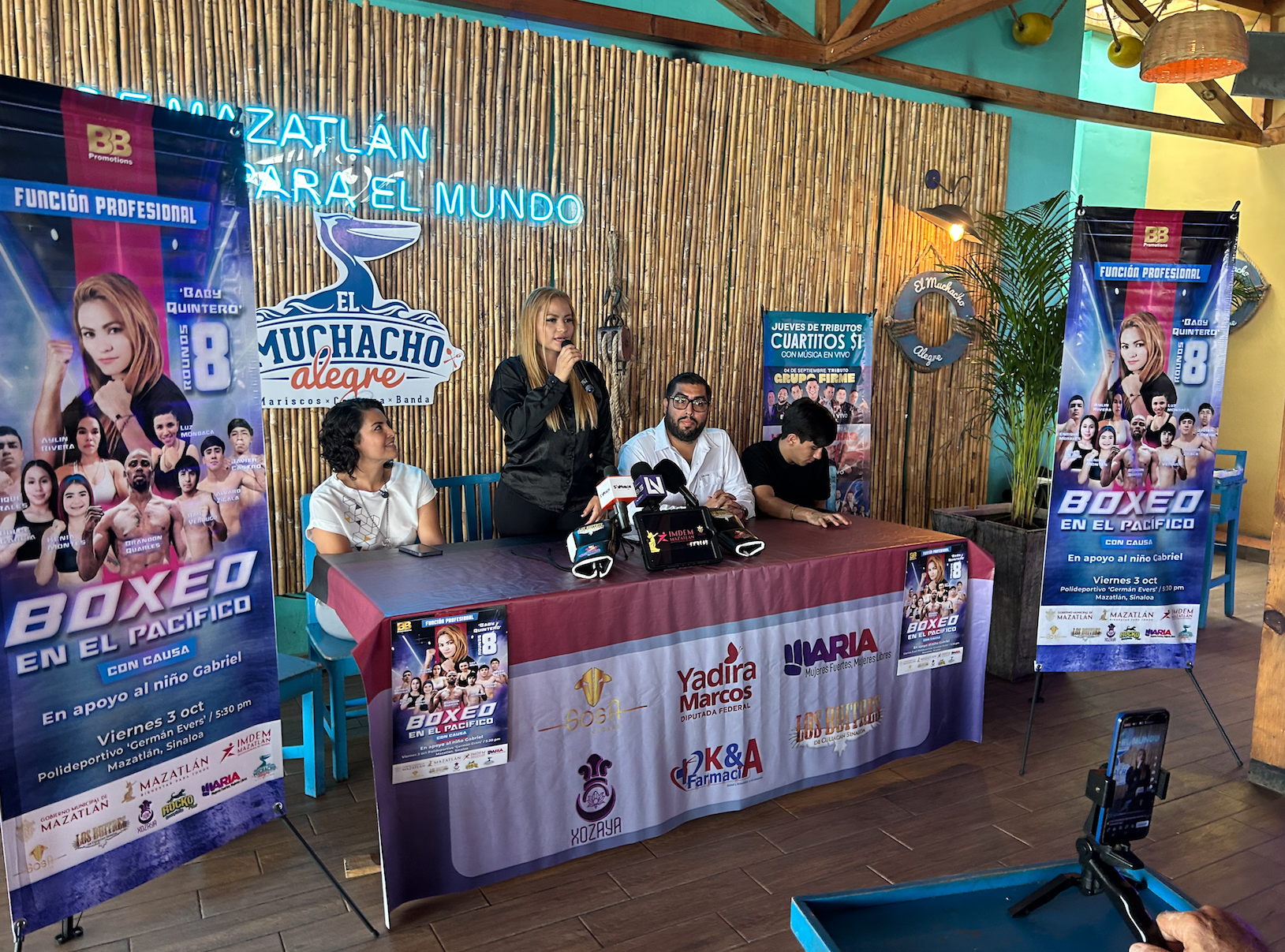 Para el 3 de octubre de este año se prepara un fenomenal cartel “Boxeo por el Pacífico con Causa” en apoyo del niño Gabriel en el polideportivo “Germán Evers” con 10 peleas, cinco de ellas de sinaloenses con extranjeros, informaron la pugilista y promotora Baby Quintero y la titular del Instituto del Deporte en Mazatlán, Fabiola Verde, quienes estuvieron acompañados por los peleadores Pedro Guevara y Álvaro Zigala, además de Ernesto Mellado.
