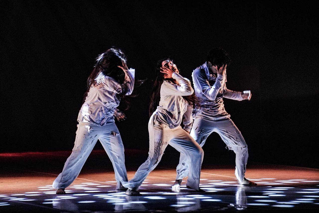 El programa abrió con Reflejo, creación e interpretación de Vania Benítez y Maximiliano Martínez, una pieza de estructura sensible y precisa que exploró el diálogo entre cuerpo y percepción, acompañada por la música de Travis Lake y la asesoría de Víctor Manuel Ruiz. A continuación, Subcorriente, de Samantha Teuffer, se desenvolvió como una investigación corporal de flujo continuo, sostenida por una atmósfera sonora construida a partir de obras de Masayoshi, Jan Jelinek y Mads Emil Nielsen.