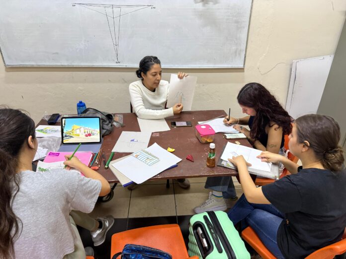 La formación artística se enriquece cuando las distintas disciplinas dialogan entre sí. Bajo esa visión integral, la maestra de Artes Plásticas Jazmín Gutiérrez, impartió una clase dirigida a alumnas del segundo semestre del nivel técnico en Teatro del Centro Municipal de las Artes, del Instituto Municipal de Cultura, Turismo y Arte de Mazatlán, en la que abordó el tema de la perspectiva con tres puntos de fuga, un conocimiento fundamental de las artes visuales que amplía la comprensión del espacio, la composición y la mirada escénica.