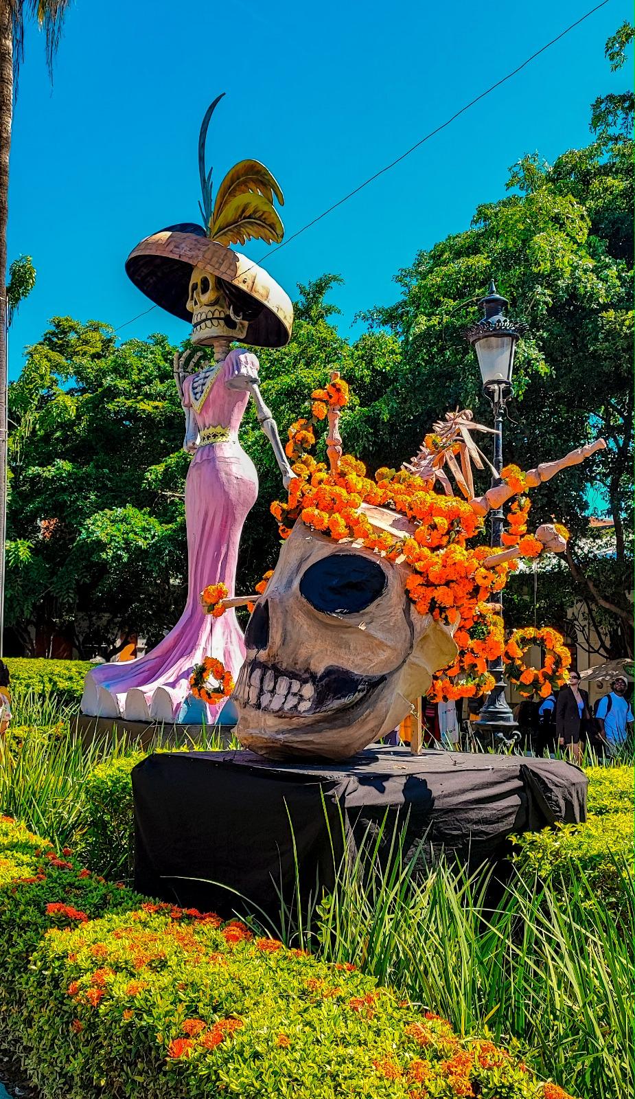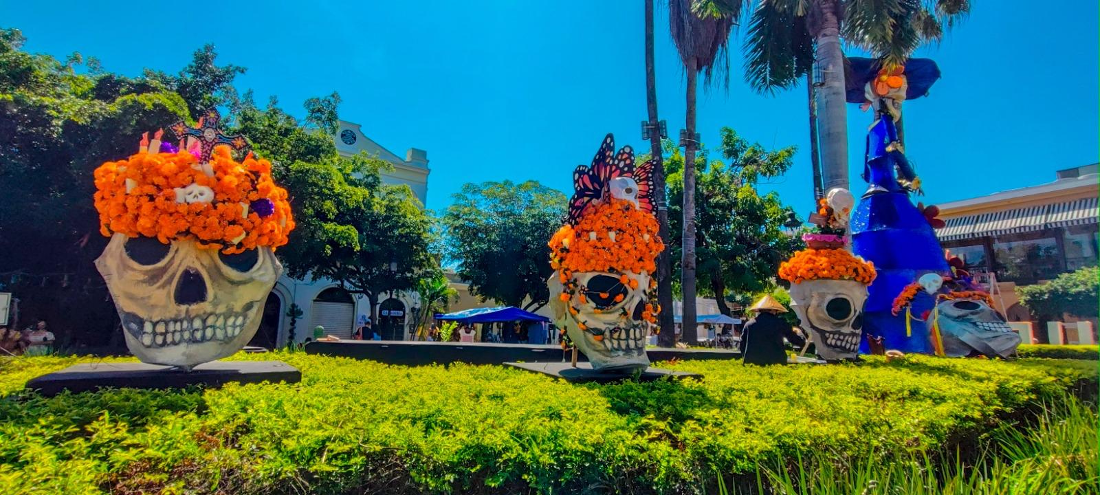 La Plazuela Machado se transformó en una ofrenda gigante con la instalación de esculturas del Centro Municipal de las Artes y la instalación de la imponente Catrina creada por Luis Antonio Ríos “Momo”.